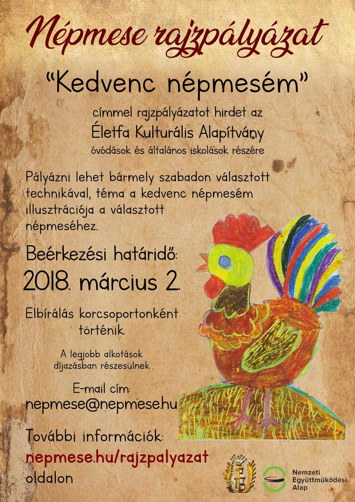 A „Kedvenc népmesém” címmel rajzpályázatot hirdet az Életfa Kulturális Alapítvány óvódások és általános iskolások részére.